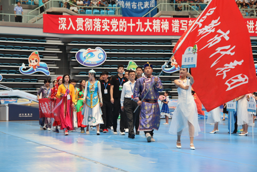 91传媒 第九届少数民族传统体育运动会开幕式运动员代表入场——阜新队